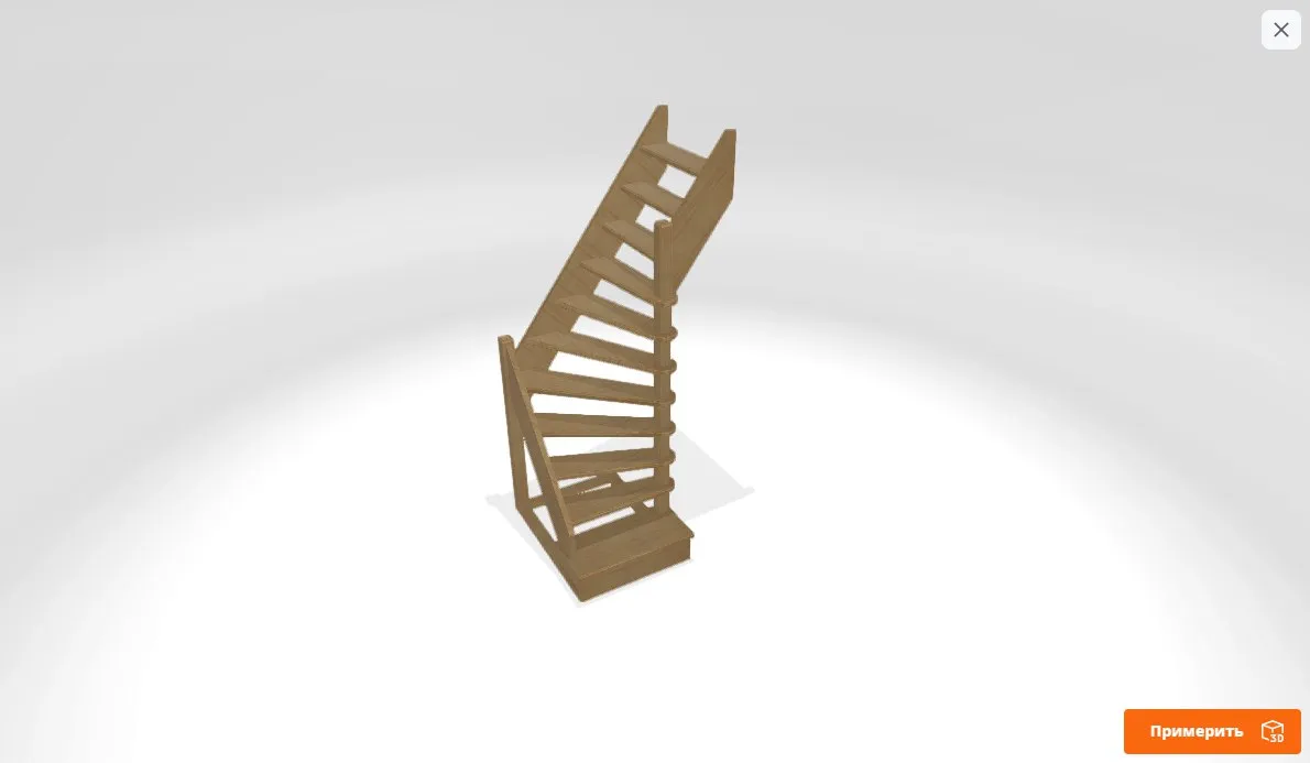 Чтобы воспользоваться этой функцией, просто перейдите на наш сайт, выберите понравившуюся лестницу, нажмите на кнопку "3D", а затем "Примерить". Подробную инструкцию вы можете найти в нашем видео.
